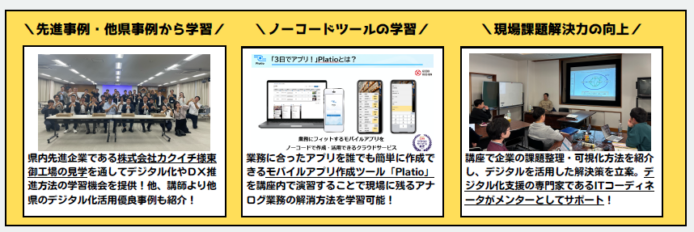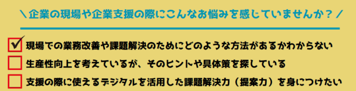 本講座は、県内企業の現場課題を自ら整理・分析し、デジタルの力を活用して解決へ導く人材を育成することを目的としています。